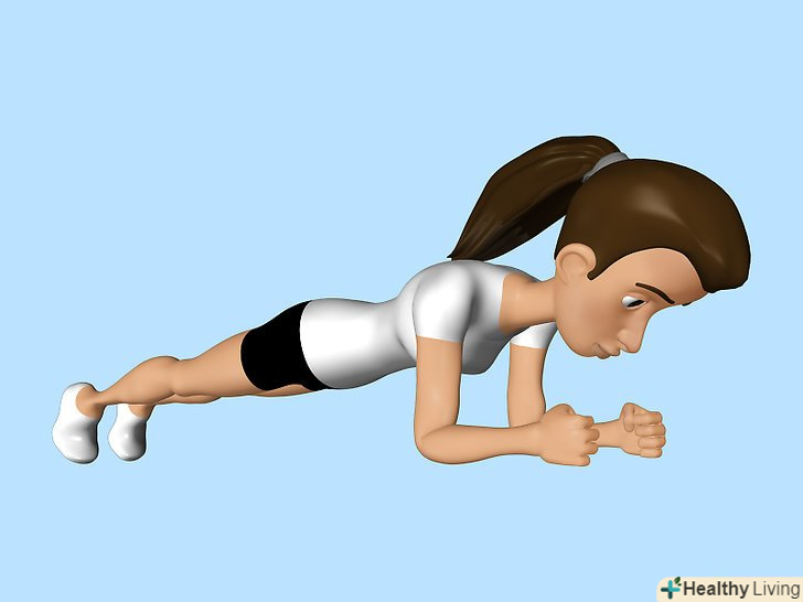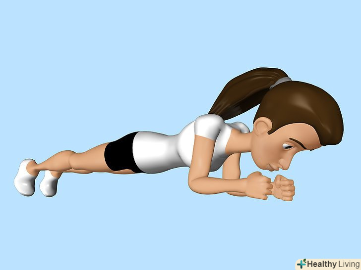 Зробіть 2-3 планки. якщо це можливо, використовуйте вагу всього тіла, а не спирайтеся на коліна.- Почніть, стоячи на долонях і колінах. Втягніть м'язи живота вгору і всередину. Поставте 1 ногу перед собою, потім наступну, утримуючи все тіло в одній прямій лінії. Затримайтеся в планці від 30 секунд до 1 хвилини, вдихаючи і видихаючи по 5 секунд. Повторіть 2-3 рази.