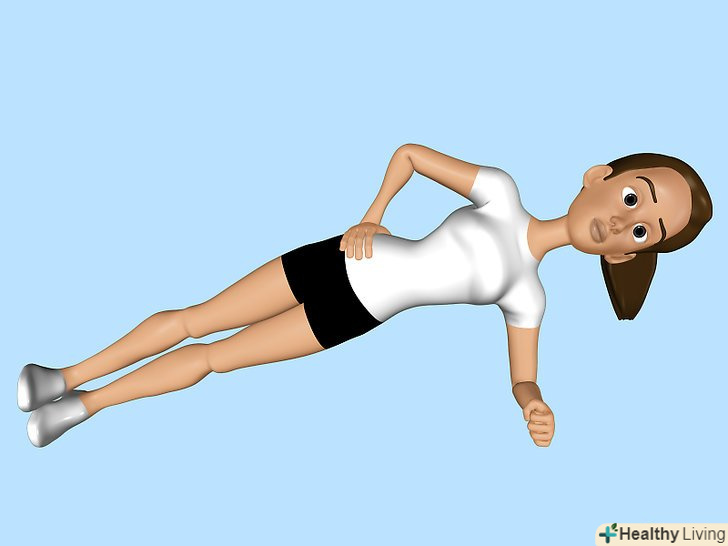 Виконуйте бічні планки, щоб попрацювати над м'язами сідниць. напружте м'язи з боків, щоб створити вигин в талії.- Лягайте на бік. Розташуйте лікоть прямо під плечем. Утримуйте тіло в прямій позиції. Втягніть м'язи живота всередину і вгору, потім підніміть тіло вгору, спираючись на лікоть і ступні, затримавшись в планці на 30-60 секунд.