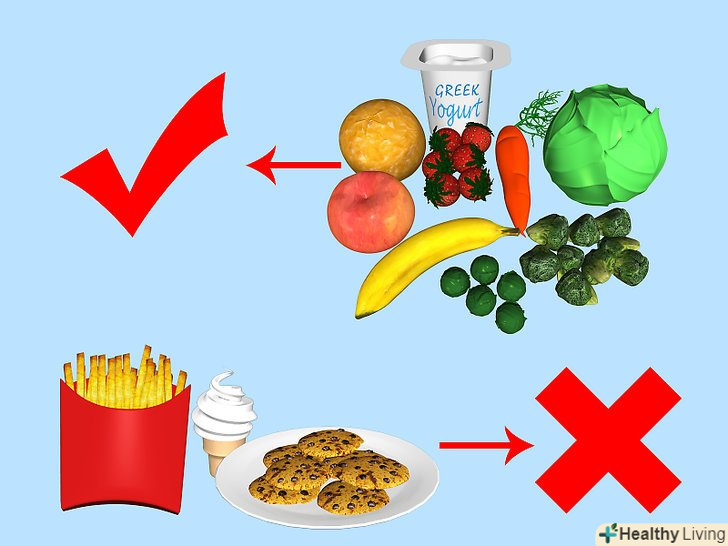 - Їжте більше овочів і фруктів. Спробуйте перекушувати такими продуктами, як чіпси з капусти, морквяні палички, хумус, ягоди та інші свіжі продукти, які поліпшать ваше здоров'я і допоможуть вам приборкати ваш апетит.