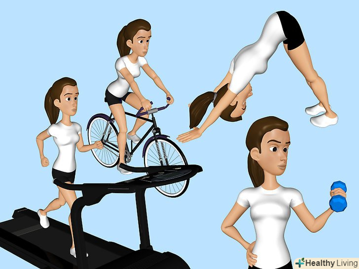 - Займайтеся на тренажері, наприклад, на еліптичному тренажері або біговій доріжці. Ви можете налаштувати ці тренажери на інтервальні тренування. Спробуйте інші заняття, наприклад, плавання, скелелазіння, швидку ходьбу або їзду на велосипеді, щоб урізноманітнити тренування.