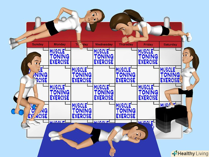 - Займайтеся силовими тренуваннями 30 хвилин або більше, як в кардіопрограмі, так і в програмі силових тренувань. Використовуйте силові тренажери або вільну вагу і додайте це вправи до 30-хвилинної тренуванні на тренажерах. Зменшіть час відпочинку між підходами, щоб прискорити серцебиття і потовиділення.