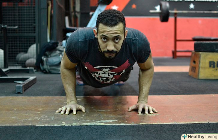 - Зробіть 3 підходи по 15 віджимань, або стільки скільки зможете, поки не відчуєте втому в м'язах. У міру зміцнення м'язів додавайте кількість повторень в підході.