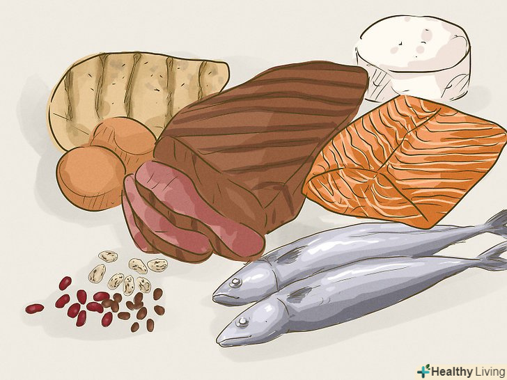 Отримуйте достатньо амінокислот. амінокислоти служать будівельним матеріалом для білків, вони необхідні, якщо ви хочете наростити і зміцнити м'язи. Крім того, амінокислоти допомагають позбутися від жиру і відновитися після тренувань. [22]- Амінокислоти містяться в м'ясі, молочних продуктах і морепродуктах, однак ви можете не отримувати достатню кількість амінокислот разом з їжею. Зважаючи на це вам можуть бути корисні добавки з амінокислотами, якщо ви хочете прискорити зростання м'язів.