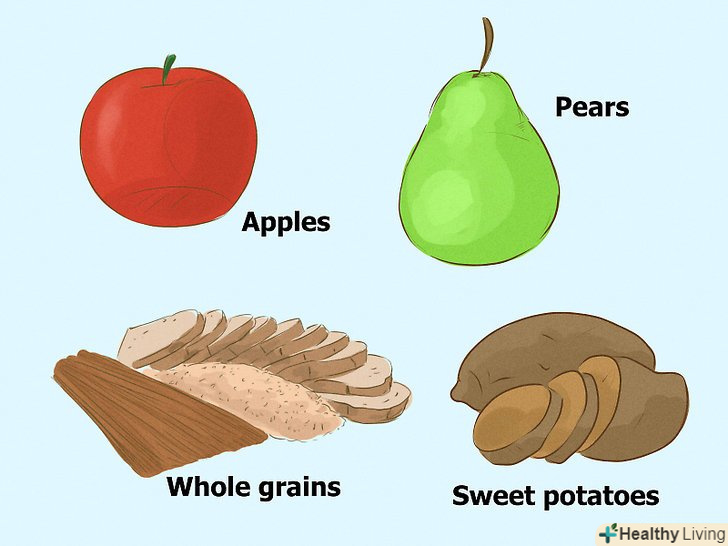Обережно вибирайте вуглеводи. вуглеводи забезпечують вас енергією під час тренувань, однак неправильні вуглеводи можуть привести до збоїв рівня цукру в крові, що зруйнує всю вашу роботу по прискоренню росту м'язів. [14]- Вибирайте джерела вуглеводів з низьким глікемічним індексом, такі як яблука, груші, цільні зерна, солодка картопля і квасоля.