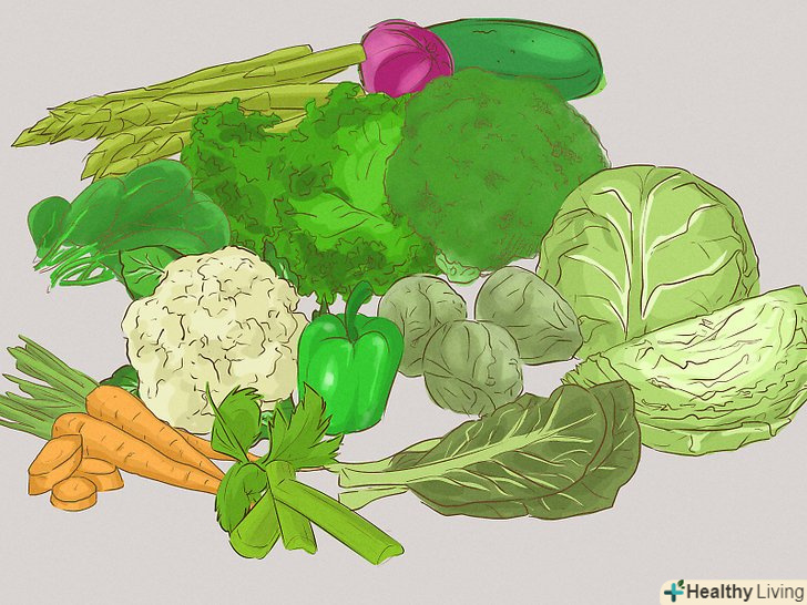Їжте більше зелених листових овочів. не дарма герой мультфільмів моряк Попай їв шпинат. Зелені листові овочі, наприклад листова капуста кале і шпинат, мають високу харчову цінність, містять мало жирів і багато розчинних харчових волокон, що робить їх незамінним продуктом, якщо ви хочете прискорити зростання м'язів. [16]- Крім іншого, зелені листові овочі захищають організм від раку і серцево-судинних захворювань.