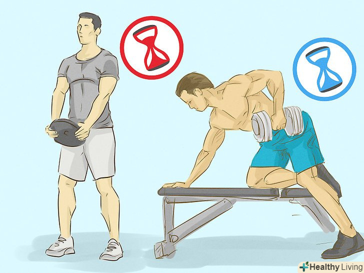Змінюйте швидкість виконання повторів. корисні як швидкі, так і повільні повтори, якщо тільки ваша фізична форма дозволяє швидко піднімати вагу. Варіювання швидкості привнесе в тренування елемент несподіванки і не дасть вашим м'язам пристосуватися до певного темпу. [3]- Наприклад, можна почати з помірної швидкості, потім виконати швидку серію, потім повільну і завершити все ще одним підходом з помірною швидкістю.