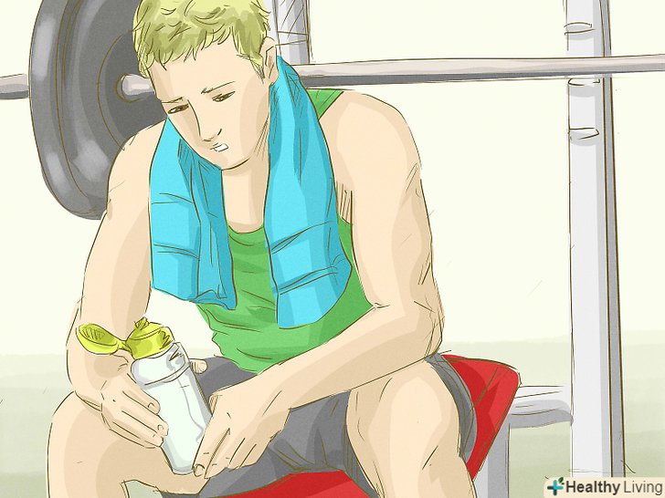 Використовуйте добавки. багато бодібілдери використовують різні добавки, що сприяють росту м'язів. Популярний вибір-креатинові добавки, які добре зарекомендували себе в цій справі, і при цьому не мають побічних ефектів. Вони доступні у формі порошку, і для максимальної користі їх слід приймати за 30-60 хвилин до тренування.- Уникайте товарів, які обіцяють певну кількість кілограмів за якийсь період часу. Кожен організм особливий, а продукти, які нібито володіють якостями, що сприяють магічному росту м'язів – просто обман.