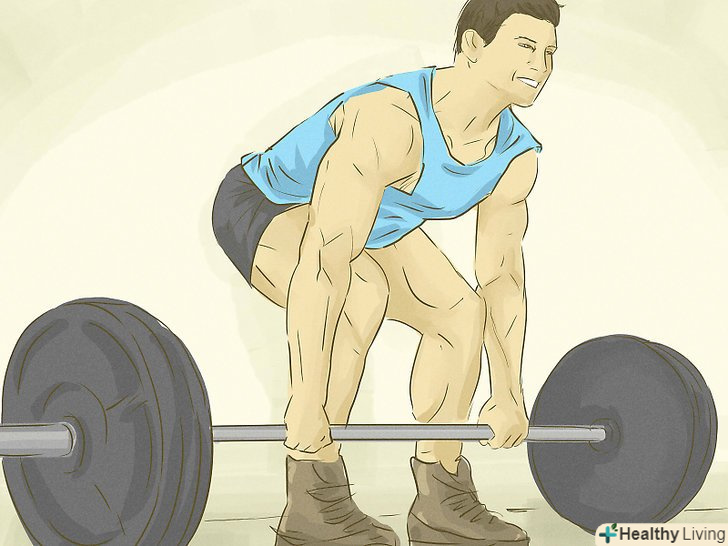 Зміцніть спину, виконуючиСтанову тягу . для цієї вправи використовуйте тренажер Сміта, штангу або гантелі. Поставте ноги на ширині плечей і за допомогою зворотного захоплення повільно опустіть обтяження вниз і поверніть його в початкове положення, найбільше напружуючи підколінні сухожилля і нижню частину спини.- Зробіть від шести до восьми повторень в 3-4 підходи. Відпочивайте близько 45 секунд між підходами.