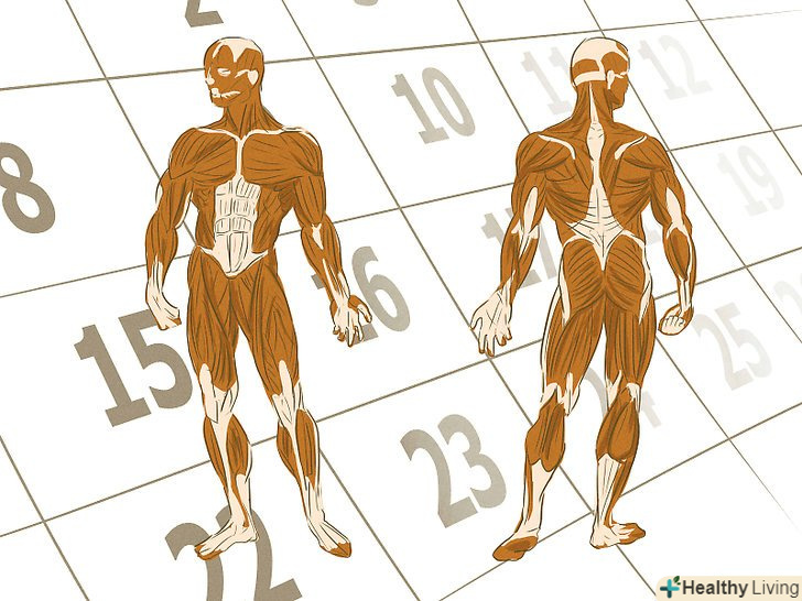 Тренуйте різні групи м'язів в різні дні. замість того щоб опрацьовувати все тіло під час кожного тренування, краще розбити групи м'язів так, щоб деякі частини тіла могли відпочити, поки інші напружуються. Створіть розклад тренувань і дотримуйтеся його, щоб ви випадково не перенапружили певну групу м'язів.