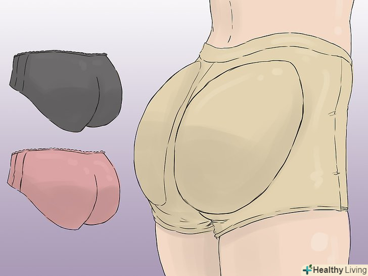 Купіть спеціальну коригуючу білизну або накладки. спробуйте моделюючу білизну, яка відразу піднімає задок без накладок, або купіть спеціальні накладки, розроблені для візуального збільшення попи, коли ви будете одягнені в джинси або штани. Це досить ефективні засоби, які миттєво збільшать вашу попу. Підбирайте розмір, який найкраще підходить під Ваш одяг і образ, якого ви хочете досягти.- Деякі джинси навіть спочатку продаються з вшитими накладками.
