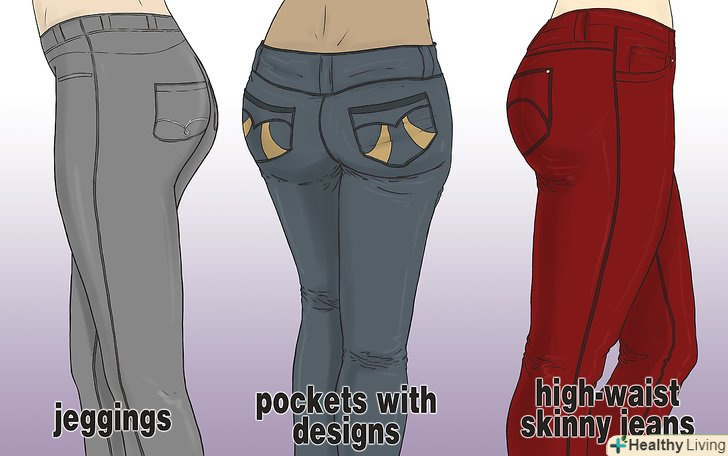 Підбирайте правильні штани. вдало підібрана пара джинсів може візуально змінити вашу попу — та буде здаватися круглої і піднятою. Наступного разу при виборі джинсів зверніть увагу на наступне:- Джинси повинні щільно сидіти. Мішкуваті штани» втоплять " ваші вигини, їх неможливо буде розгледіти під надлишками тканини. Завужені джинси або еластичні джинси ідеально підходять для демонстрації вашої попи. Якщо вам в них не дуже зручно, підберіть джинси, які просто добре сидять ззаду.