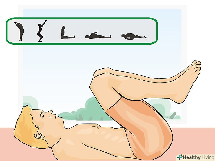 Вправи з положення лежачи. ляжте на спину на ліжко або на гімнастичний килимок. Напружте і утримуйте м'язи тазового дна протягом 5 секунд. Не напружуйте сідниці, прес і м'язи стегон. Розслабтеся на 5 секунд і повторіть вправу. [7]- Оскільки простіше виконувати вправи Кегеля з положення лежачи, почніть практикуватися саме так.