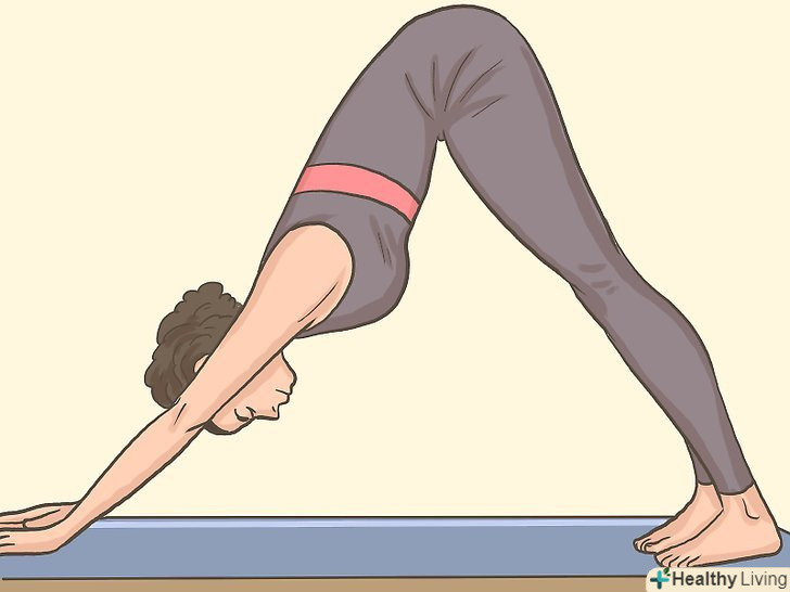 Спробуйте зайнятисяЙогою або Пілатесом . заняття йогою і пілатесом допоможуть розслабитися і підвищити гнучкість тіла, багато з поз йоги орієнтовані на роботу сідничних м'язів. Таким чином, якщо ви будете регулярно займатися йогою або пілатесом, сідничні м'язи можна буде швидко привести в тонус.- Спробуйте виконати позу "собака мордою вниз", а потім позу собаки на трьох лапах. Обома руками і ногами спирайтеся в підлогу, вигніть спину вгору, наскільки зможете. Щоб встати в позу "собака на трьох лапах", підніміть праву ногу в повітря, при цьому ліва нога і обидві руки повинні твердо стояти на підлозі. Тепер поміняйте ноги і виконайте вправу ще раз.
