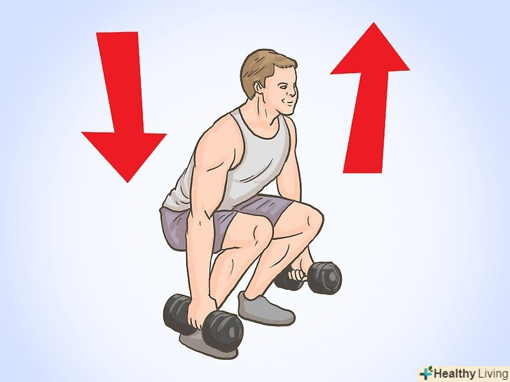 Тепер повторюйте ці вправи, але вже з додатковою вагою. Якщо ви будете виконувати базові вправи (наприклад, присідання або випади) з додатковою вагою 2-4 кг, результати не змусять себе чекати! [5]- Не намагайтеся розмахувати гантелями. Вправа буде ефективніше, якщо утримувати позицію протягом 30 секунд як мінімум.