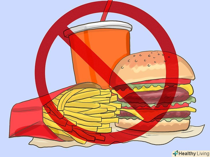 Відмовтеся від нездорової їжі. ви навряд чи зможете досягти бажаних результатів за допомогою одних тільки вправ. Якщо ви неправильно харчуєтеся, фізичних вправ не буде достатньо, щоб протистояти тим наслідкам, які несе нездорова їжа. Виключіть шкідливу їжу зі свого раціону харчування.- Головний мінус фаст фуду в тому, що він містить багато жиру, калорій і сполук натрію. Натрій сприяє утриманню води в організмі, через що попа буде виглядати більше, а целюліт стане більш помітним.