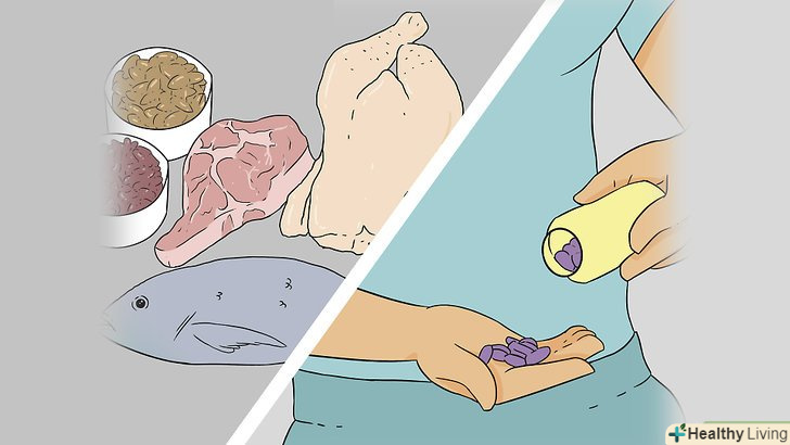 Їжте багато білка. для формування м'язів організму потрібен білок, тому вам потрібно збільшити його споживання. Їжте яловичину, свинину, курятину, рибу, яйця і сир. Існують також джерела білка неживотного Походження: квасоля, інші бобові, тофу. Якщо вам важко їсти більше білка, спробуйте пити протеїнові коктейлі або молоко.- Можете спробувати харчові добавки, такі як креатин. Дослідження показують, що креатин допомагає наростити м'язову масу безпечно для здоров'я, якщо приймати його кожен день під час їжі.
