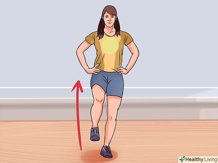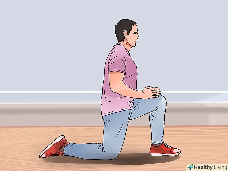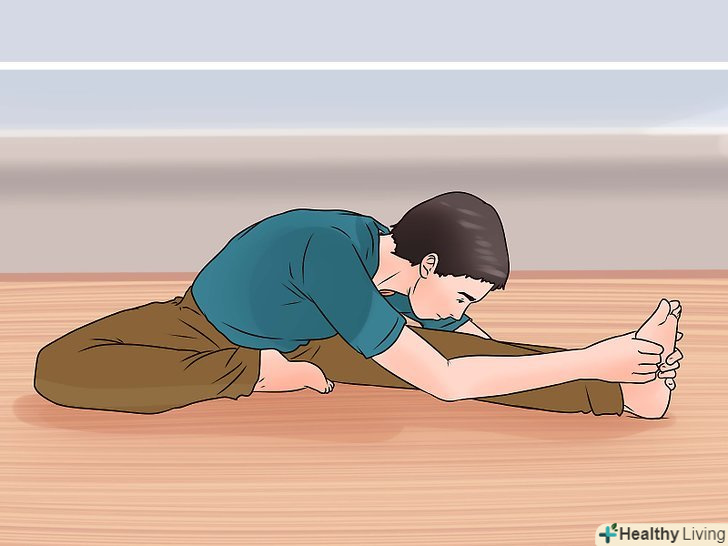 Вправи на розігрів. щоб розігріти свої м'язи, виконайте динамічні розтяжки з низькою інтенсивністю, при яких задіюються ті ж групи м'язів, що і при виконанні вправ або занятті спортом. Ці вправи поступово підвищать ваше серцебиття, збільшать приплив крові до м'язів і температуру тіла, тим самим підвищуючи користь від розтяжок. [8] якщо ви хочете отримати максимум від виконання розтяжок і стати більш гнучким максимально швидко, ви повинні займатися до появи у себе легкого поту. [9]- Перед тим як приступити до підняття тягарів, виконання кардіовправ або вправ на розтяжку, вам слід виконати кілька вправ з власною вагою, наприклад, присідання, випади, віджимання, бічні випади або стрибки ноги разом, ноги нарізно. Зробіть три підходи по 20-30 повторень. [10]