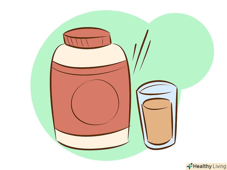 Подумайте про те, щоб доповнити меню сироватковими протеїнами. протеїнові добавки, такі як сироваткові порошки, поширені серед бодібілдерів і приносять користь широкому числу штангістів, особливо якщо вам доводиться докладати зусиль, щоб отримати свою денну порцію.- Протеїнові добавки найбільш ефективні протягом 30 хвилин після тренування, так що м'язи можуть швидко відновитися і згодом вирости. Протеїновий шейк можна включити в харчування і за годину до тренування, що посприяє білковому синтезу.