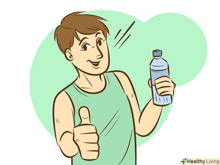 Підтримуйте високий рівень водного балансу. бодібілдери часто носять з собою 5-літрові бутлі води з обґрунтованої причини: Вам теж необхідно зберігати дуже хороший рівень водного балансу, щоб бути у формі. Під час тренувань вам необхідно випивати як мінімум 300 мл води кожні 10-20 хвилин тренування.- Уникайте цукрових спортивних напоїв та інших рідин під час тренувань. Просто дотримуйтеся води. Після тренувань ви можете випити трохи кокосової води, щоб поповнити запаси електролітів, або додайте кілька електролітичних таблеток у воду, роблячи спортивний напій домашнього приготування.