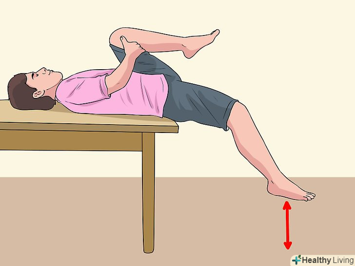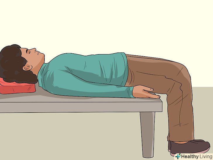 Ляжте на стіл так, щоб Ваша спина була пряма, а обличчя звернене до стелі. зігніть ноги в колінах під прямим кутом, ваші стопи повинні бути все ще на підлозі.