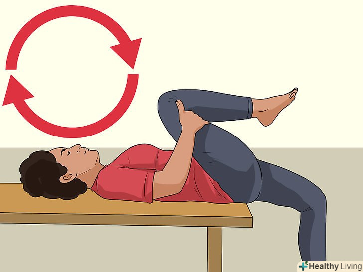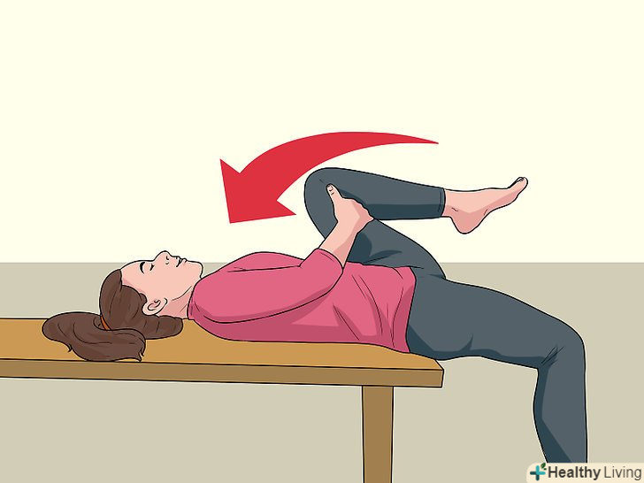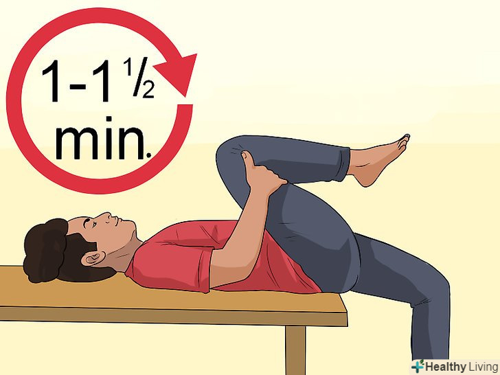 Підніміть одну ногу до вашої грудей. розташуйте одну руку на поверхні коліна, а іншу – під ним, потім притягніть коліно ще ближче до області плечей або голови, зберігаючи іншу ногу міцно на підлозі.