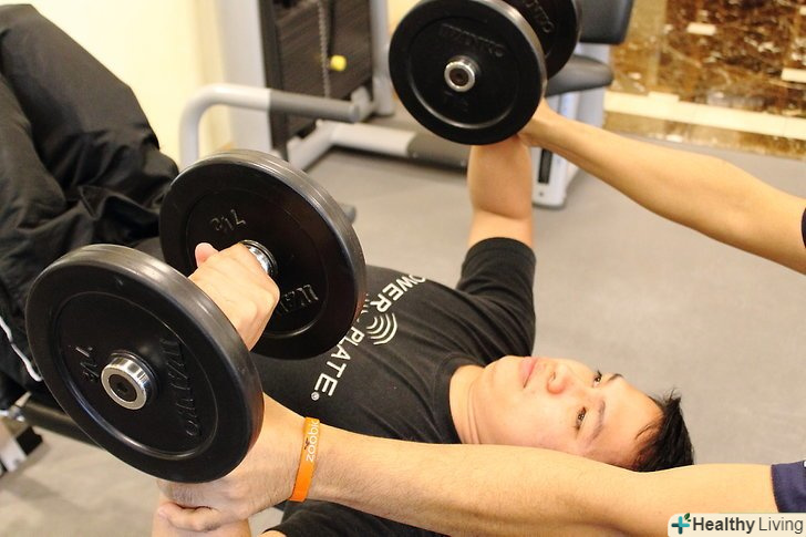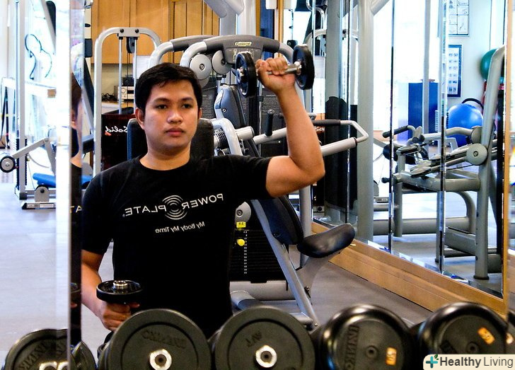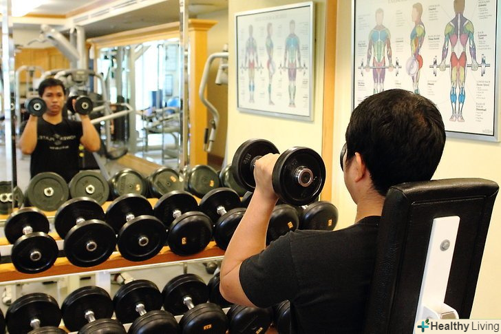 Дивіться на себе в дзеркало. Так як ви не використовуєте тренажер, щоб підтримувати правильну форму вашого тіла, ви повинні уважно стежити за тим, як піднімаєте гантелі.