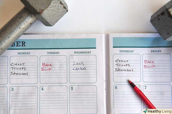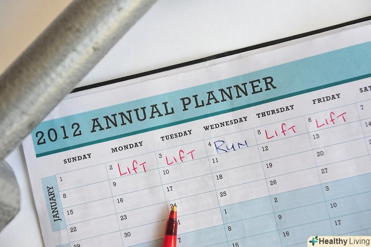 Розробіть реалістичний графік тренувань. ставте реальні для досягнення мети і вирішите, чого ви хочете досягти тренуваннями. Якщо ви новачок в тренувальному процесі або відновлюєте тренування після тривалої перерви-почніть повільно.- Якщо ви новачок в силових тренуваннях, то для того щоб відчути результати, вам знадобиться більше часу, ніж того, у кого вже є програма тренувань і досвід силових вправ.