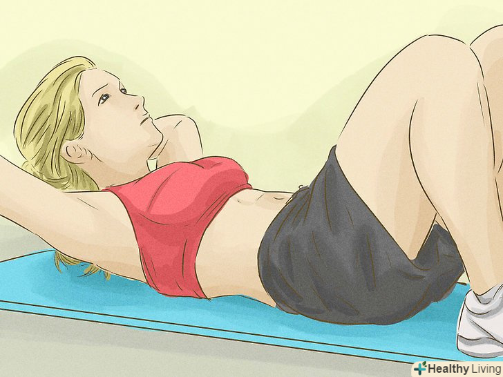 Робіть планки і качайте прес. якщо вам потрібні вправи, які не вимагають використання спеціального інвентарю, вам підійдуть планки і скручування. Ці вправи допоможуть вам опрацювати м'язи живота, і їх можна виконувати в будь-якому місці в будь-який час.- Планка. Початкова позиція планки схожа з позою віджимання. Прийміть упор лежачи, зігніть руки в ліктях, поставте руки на підлогу навпроти пахв. Підніміть тіло вгору, як якщо б ви хотіли віджатися. Затримайтеся в цьому положенні на прямих руках на 30 секунд або більше, потім опустіться на землю, відпочиньте і повторіть.