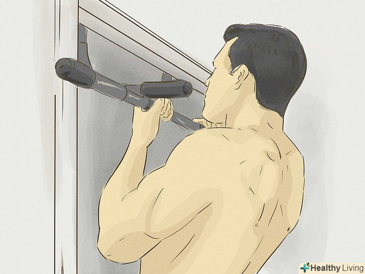 Віджимайтеся і підтягуйтеся. робота з власною вагою допоможе вам стати сильнішими. Віджимання і підтягування — це корисні вправи, які можна виконувати з невеликим набором інвентарю. Щоб ускладнити вправу, додайте кілька повторень і використовуйте обважнювачі на ногах. Ці прості та ефективні вправи допоможуть вам опрацювати біцепси і трицепси, а також м'язи кора.- Віджимання. Прийміть положення упор лежачи на підлозі або на килимку обличчям вниз. Поставте долоні на підлогу на рівні пахв. Піднімайте тіло над землею за допомогою сили рук так, щоб плечі, живіт і ноги відривалися від землі. З підлогою повинні стикатися тільки пальці ніг і долоні. Опустіться до землі і повторюйте до відмови.