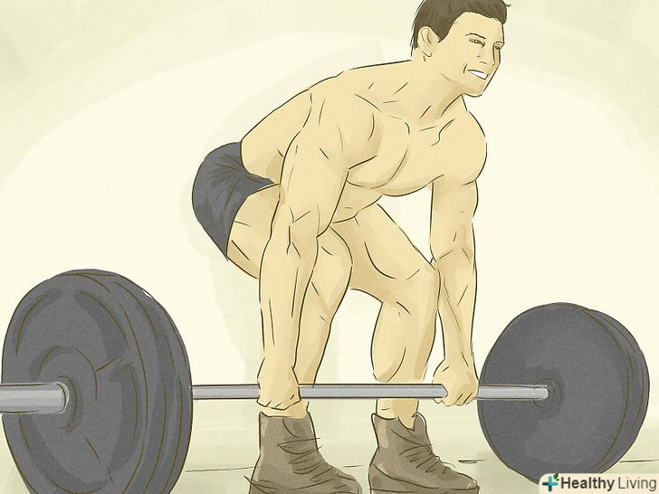 Виконуйте станову тягу. станова тяга — це нахил до штанги, підйом і повернення на місце. Ця вправа зміцнює сухожилля, м'язи живота і спини. Важливо виконувати цю вправу з правильною технікою і використовувати вагу, відповідний вашому рівню підготовки, інакше можна перевантажити спину. Спробуйте наступні види цієї вправи:- Класична станова тяга. Станьте перед штангою, навантаженої такою кількістю ваги, яке ви зможете підняти 10-15 разів до відмови. Зігніть ноги в колінах, візьміться за штангу двома руками. Розпряміться, зігніть ноги в колінах і опустіть штангу. Повторивши. Коли м'язи зміцніють, поступово збільшуйте вагу і знижуйте кількість повторень.