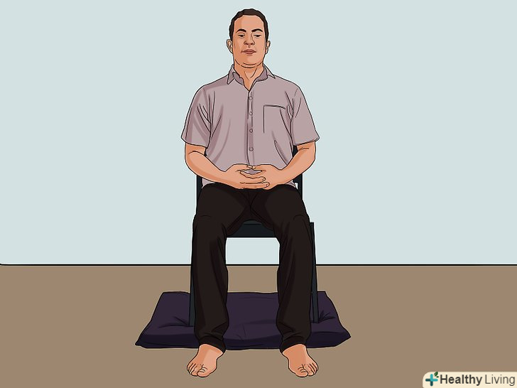Станьте або сядьте і поставте ноги на ширині плечей. тримайте спину рівно. Станьте на ноги, якщо сидячи на стільці вам важко тримати спину рівно. Розправте плечі. [11]