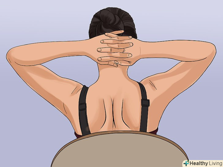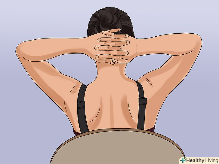 Зчепіть руки в замок за головою. лікті повинні бути спрямовані назовні. Тримайте спину прямо і не згинайте шию. [12]