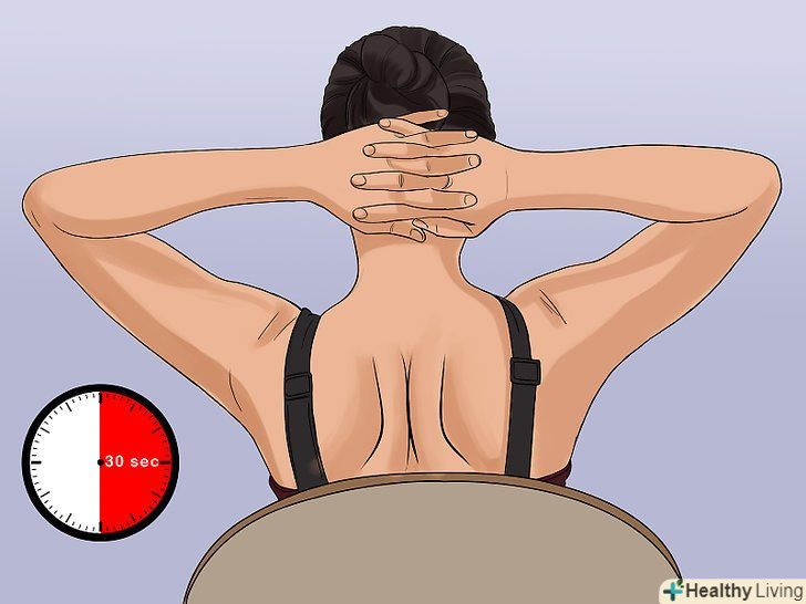 Затримайтеся в такому положенні на 15-30 секунд. під час розтяжки не забувайте глибоко дихати. Також пам'ятайте, що шию потрібно тримати прямо. Як би вам не хотілося нахилити шию вперед, не робіть цього. [14]