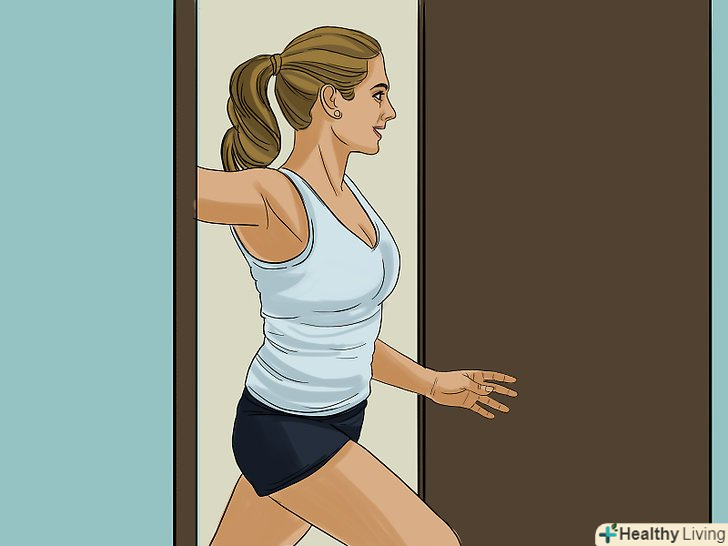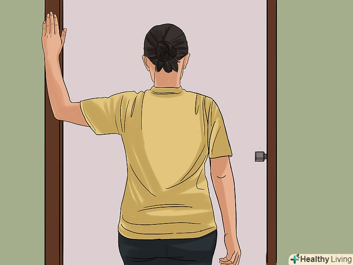 Упріться рукою об дверну раму. зігніть руку під кутом в 90° і покладіть долоню на дверну раму. Упріться цією рукою об дверну коробку. [17]