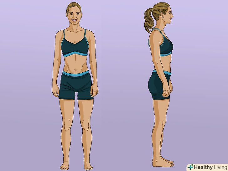 Станьте прямо, ноги на ширині плечей. розслабте плечі і розпряміть їх. Напружте м'язи кора і випрямити спину. [6]