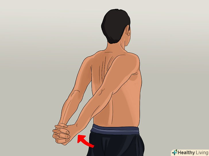 Заведіть лікті назад, тим самим звівши разом лопатки. ви відчуєте напругу в грудних м'язах. [13]