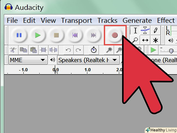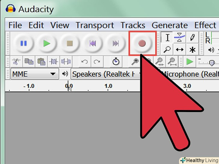 Наблизьте мікрофон до рота і почніть запис в Audacity.