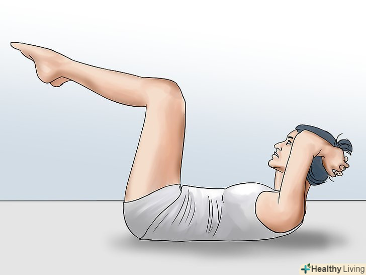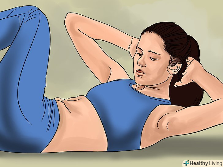 Приводите в тонус стегна і талію. ляжте на спину, розташуйте ноги під прямим кутом (гомілки звернені вгору, а поверхня стегон спрямована у зворотний від вашого обличчя сторону). Надішліть руки за голову, а лікті при цьому звертаються вгору. Постарайтеся ліктями дотягнутися і торкнутися колін. Зробіть 20 повторень, поступово нарощуючи кількість повторень.