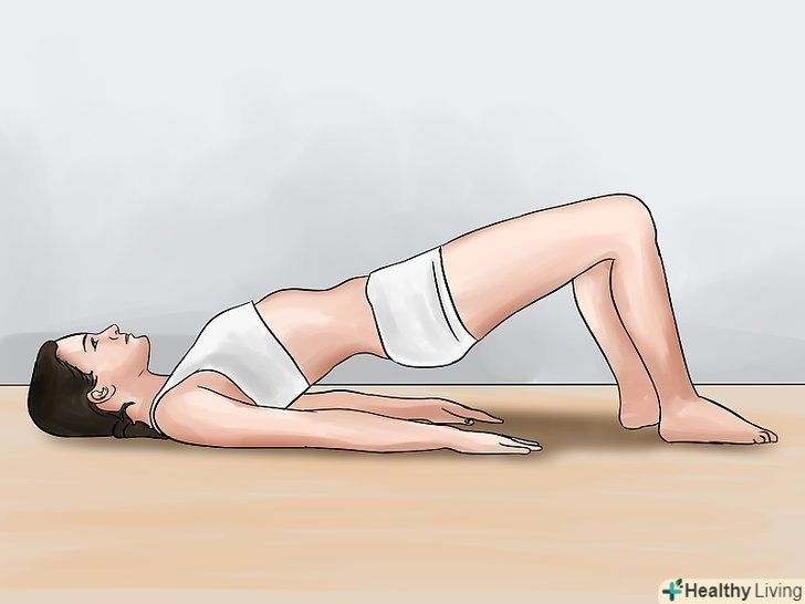 Зміцніть свої сідниці. ляжте спиною на підлогу і розташуйте ноги в положенні для звичайних скручувань. Напружте сідничні м'язи і підніміть ваші стегна, щоб ваші коліна, стегна і плечі вишикувалися в одну лінію. Сплетіть пальці рук під собою. Протримаєтеся в цьому положенні 30 секунд, прагнучи досягти 2-х хвилинного рубежу.