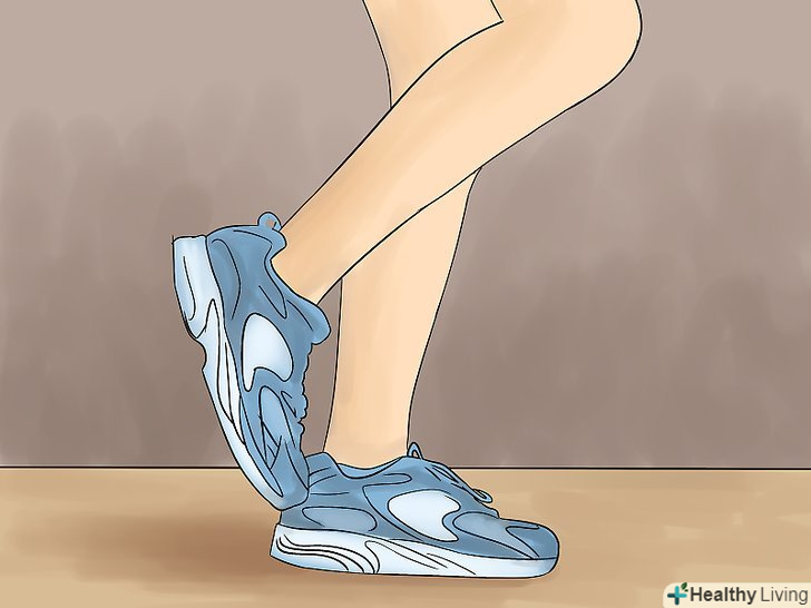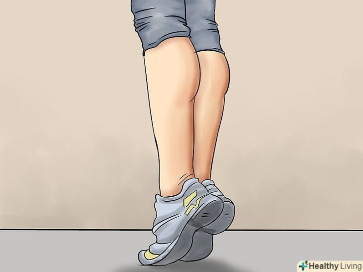 Працюйте над литковими м'язами. Станьте рівно, стопи трохи ширше плечей. Підніміться на пальці ніг, не згинаючи при цьому ніг в колінах. Поверніться у вихідне положення. Повторіть 20 разів.