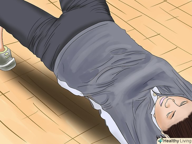 Тренуйте м'язи Преса. робіть 20 звичайних скручувань, відриваючи лопатки плечей при цьому від підлоги. Потім виконайте 10 скручувань в сторони, 30 велосипедиків ногами. Для збільшення навантаження зробіть 20 звичайних скручувань поверх цього.