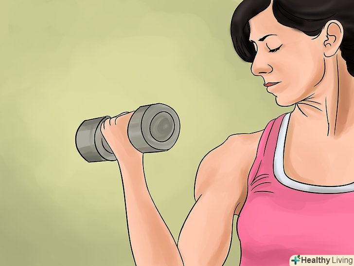 Працюйте руками. піднімайте не сильно важкий і не сильно легка вага. Здійснюйте по 10 підйомів на кожну руку.