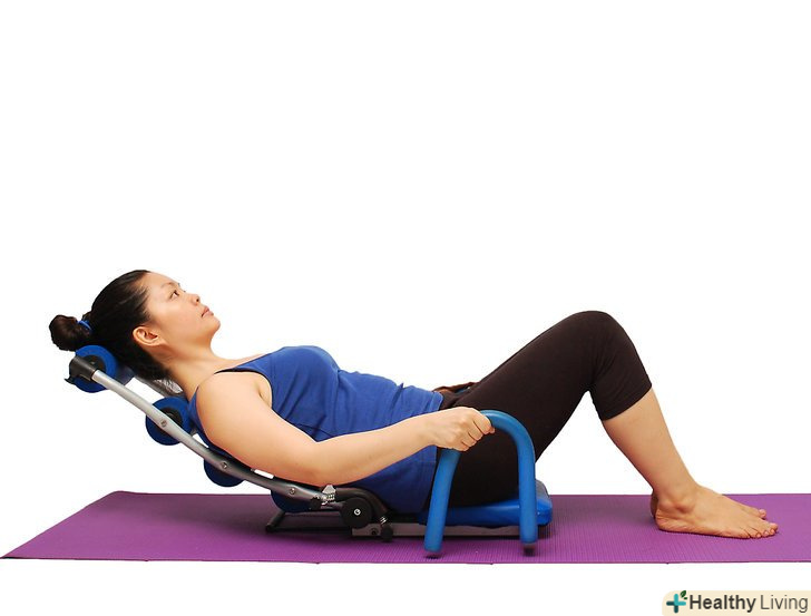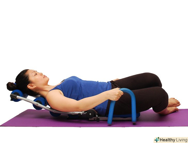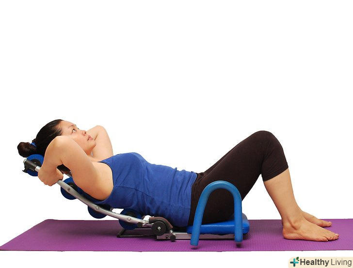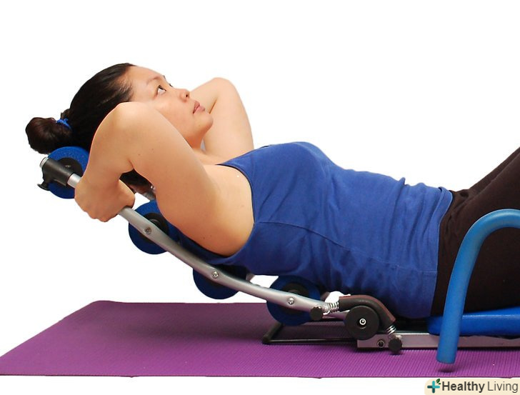 Опустіться ближче до підлоги. розташуйте свою голову на заголовку тренажера. Тримайте лопатки трохи піднятими від підлоги, а інша частина спини нехай в цей час щільно прилягає до підлоги.