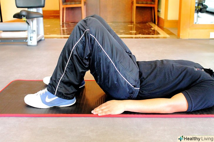Ляжте на підлогу, згинаючи ноги в колінах і розташовуючи стопи на підлозі.