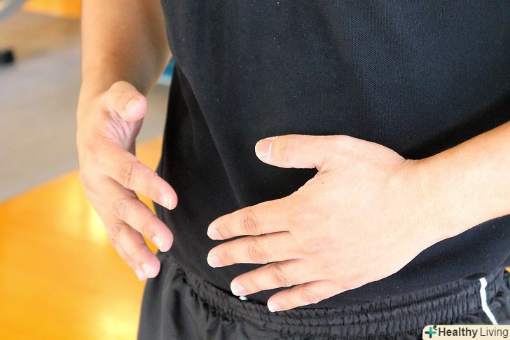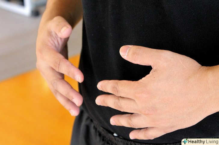 Розташуйте ваші руки на поверхні живота по обидва боки пупка. міцно натисніть двома пальцями кожної руки на нижню частину преса.