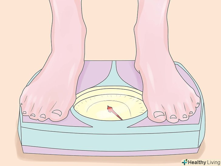 Дізнайтеся свою вагу в кілограмах. Якщо ви давно не вимірювали свою вагу — встаньте на ваги. Чим більше ваша вага, тим більше енергії щодня витрачається вашим організмом. Зважування не буває зайвим, якщо ви намагаєтеся набрати або скинути вагу, так як вам постійно потрібно контролювати, як змінилося початкове значення.- Якщо ви намагаєтеся набрати або скинути вагу, пам'ятайте, що він може коливатися від 2 кг або близько того протягом дня, залежно від того, що ви з'їли і випили, коли відвідували вбиральню тощо. Якщо ви встали на шлях зміни своєї ваги, то зважуватися необхідно приблизно раз на тиждень, постійно в один і той же час доби і в одній і тій же одязі. [2]