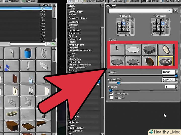 Покладіть 4 колеса до контейнера і переконайтеся, що вони підняті.підійдіть до кожного колеса і натисніть 'e,' щоб змінити напрямок колеса, щоб вони всі йшли вперед.