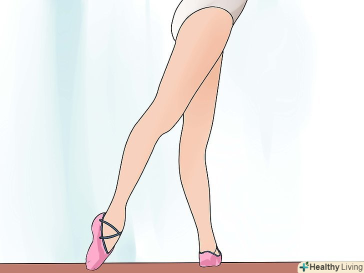 Робіть вправиНа розтяжку , коли м'язи будуть розігріті. тягніть м'язи тільки після фізичного навантаження, коли до них надходить багато крові. Якщо тягнути холодні м'язи, можна травмувати їх. Розтягуючи м'язи, завмріть в потрібному положенні і не розгойдуйтеся. Опускайтеся в розтяжку на видиху, робіть вдих перед рухом. [24]- Щоб розтягнути сухожилля , сядьте на підлогу, витягніть ноги перед собою. Потягніться до шкарпеток якнайдалі. Тягніться до тих пір, поки не відчуєте натяг в ногах, і затримайтеся на 15-20 секунд.