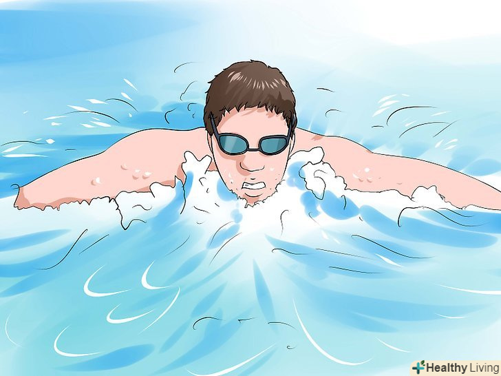 ПлавайтеВ басейні або у фітнес-центрі. плавання-це відмінне навантаження на все тіло, і воно може урізноманітнити ваші тренування. Спробуйте плавати 20 хвилин або так довго, як ви можете. Не бійтеся робити паузи, особливо якщо ви тільки починаєте займатися. [13]- Можна не тільки плавати, але і займатися аквааеробікою або ходити у воді. Ці види навантаження підходять людям з проблемами з суглобами і із зайвою вагою.