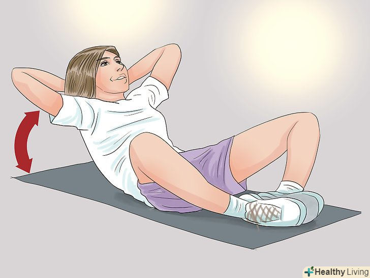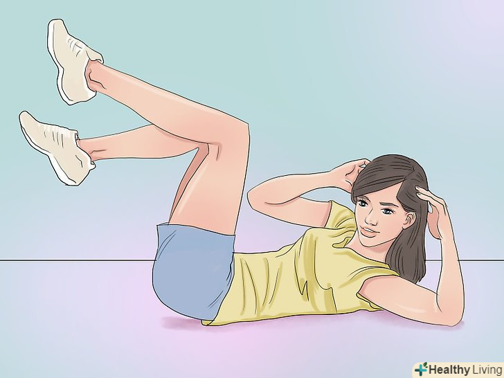 Окресліть м'язи і попрацюйте над стегнами і талією. ляжте на спину. Підніміть ноги так, щоб ваші стегна були спрямовані прямо вгору, ноги зігнуті, а щиколотки показували в іншу сторону від вас. Покладіть руки за голову, лікті дивляться вперед. Доторкніться колінами до ліктів. Це також допоможе вашому пресу. Це як "скручування". Ніколи не розташовуйте руки за головою, тому що так ви збільшите напругу на шию, і у вас можуть з'явитися проблеми зі спиною. Зробіть 3 підходи по 15 разів.